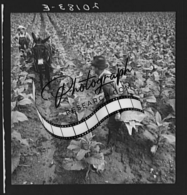 Title: White sharecropper and wage laborer priming tobacco early in the morning. Granville County, North Carolina