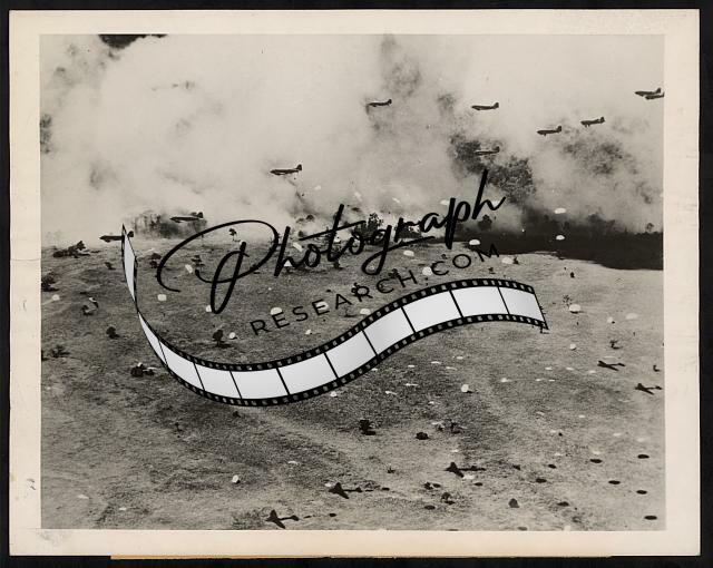 U.S. paratroopers bailing out near Lae,Papua New Guinea in 1943,smokescreen