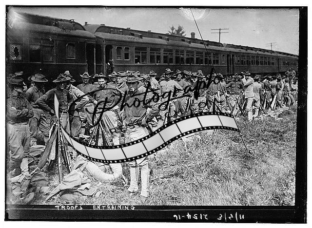 Troops entertaining,men,smoking,Train,RR,Bain News Service