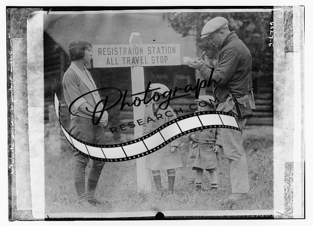 Tommy Gibbons registering,entrance,Glacier Park,family,son,wife,sign,travel stop