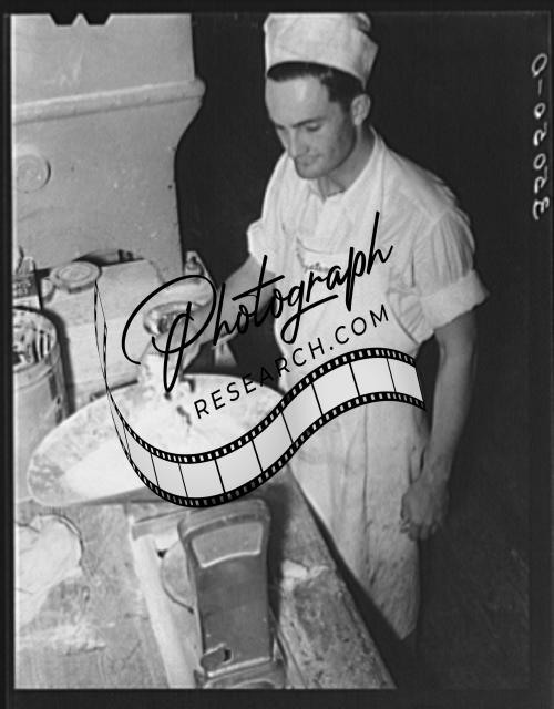 Title: Cutting up pumpkin for pies. Bakery, San Angelo, Texas