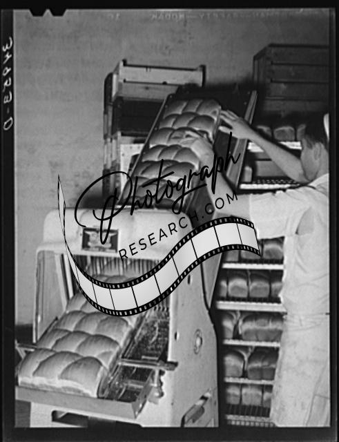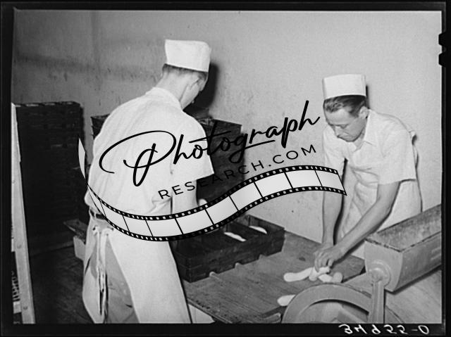 Title: Centrifugal machine for forming dough into shape for rolls. Bakery, San Angelo, Texas