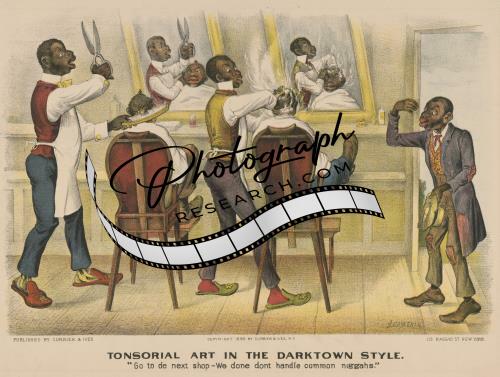 Tonsorial Art,Darktown Comics,Barber Shop,Cutting Hair,c1890,African Americans