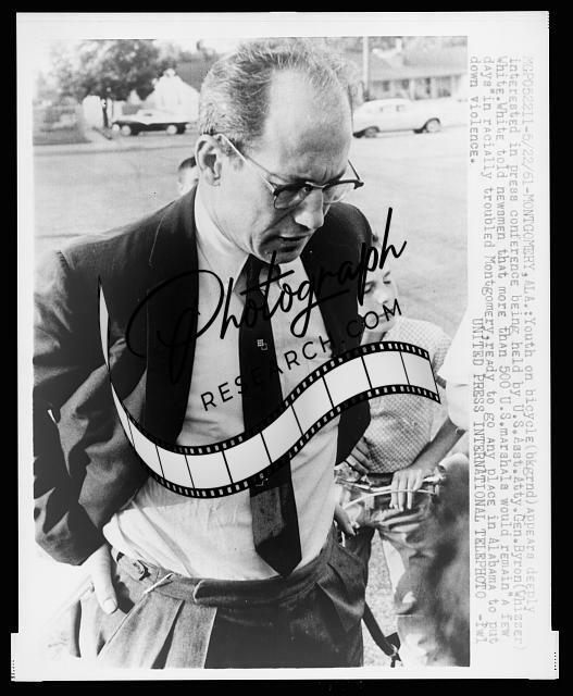 U.S. Assistant Attorney General Byron 'Whizzer' White, half-length portrait, turned right, facing down, at press conference discussing racial troubles in Montgomery, Alabama