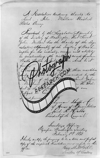 A Resolution Tendering Thanks to Lt. John Mullan, U.S. Army