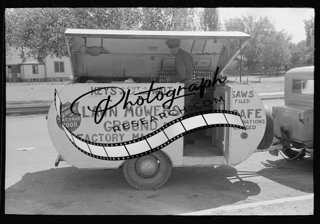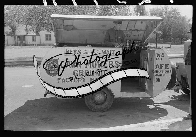 Trailer of itinerant key maker,lawn mower sharpener,Saint Johns,Arizona,AZ,1