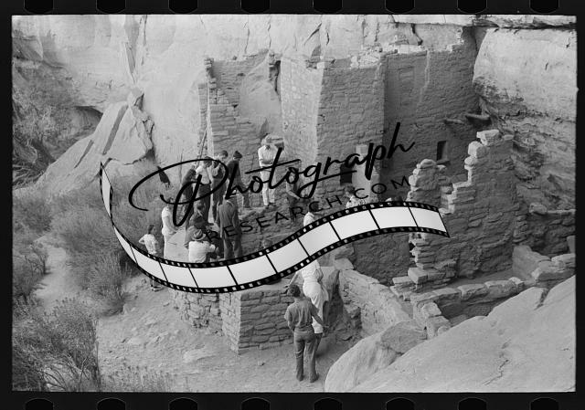 Tourists at cliff dwellings,Mesa Verde National Park,Colorado,CO,FSA,1939,4