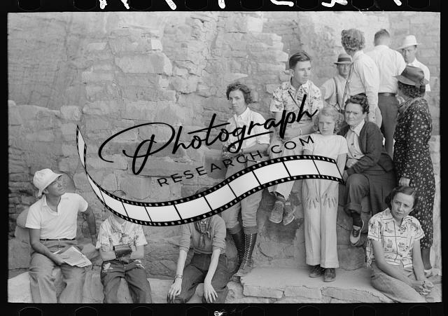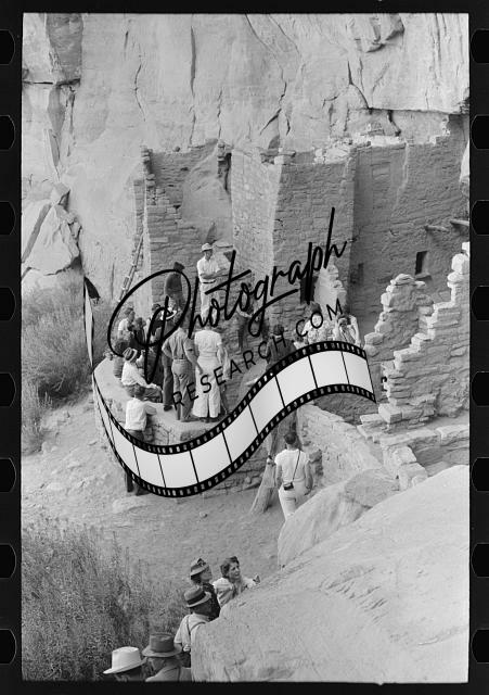 Tourists at cliff dwellings,Mesa Verde National Park,Colorado,CO,FSA,1939,2