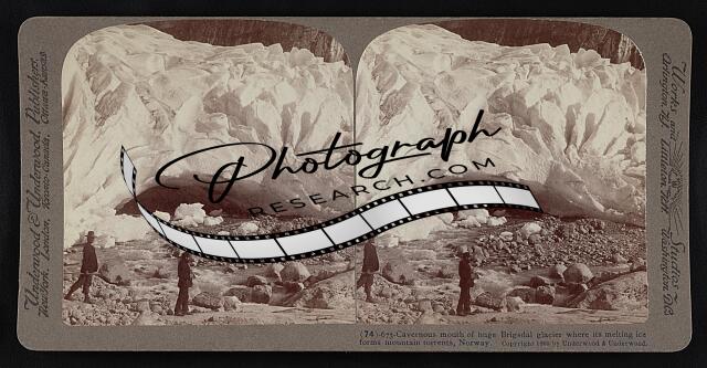 Cavernous mouth of huge Brigsdal glacier where its melting ice forms mountain to