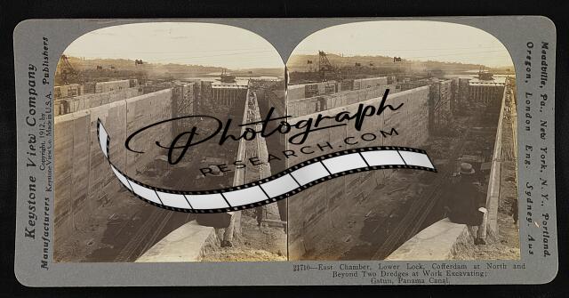 East chamber, lower lock, cofferdam at north and beyond two dredges at work exca