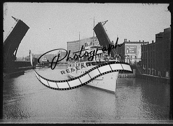 Steamboat United States passing Street bridge,Chicago River,Illinois,IL,1900