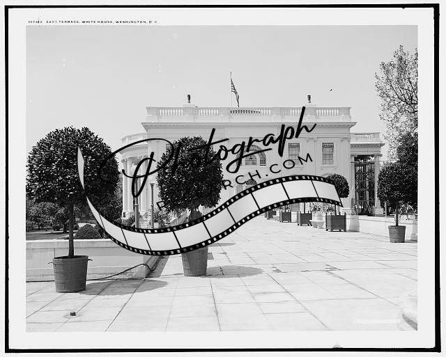 East terrace,White House,official residences,plants,paths,Washington DC,c1904