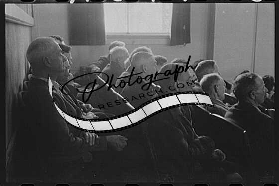 Title: Townspeople listening to discussion during town meeting, Woodstock, Vermont