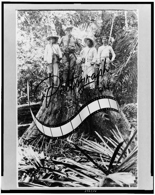 Four Men in Large Stump,Lumbering Region,Tree,Mindoro,Philippines,1900-1923
