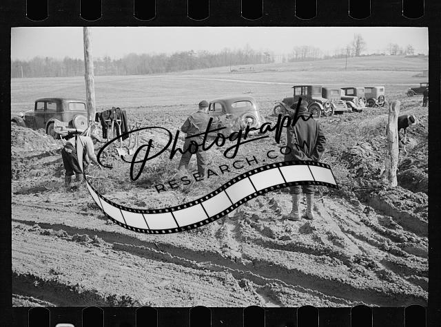Farmers,laborers,overalls,bibs,structures,fences,hills,1935 1