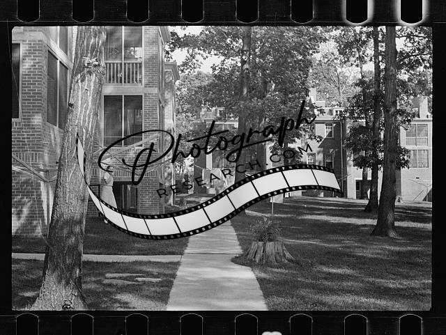 Houses,homes,balconies,brickwork,clotheslines,laundry,nitrates,photographs,1935