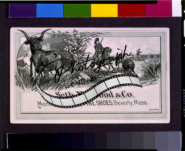 Seth Norwood & Co, shoes, Trade card advertising. 1875