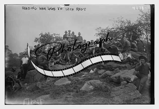 Reading war laws to 12th Regiment,military,men,Bain News Service,1917
