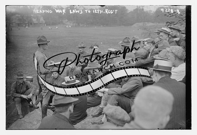 Reading war laws to 12th Regiment,military,men,Bain News Service
