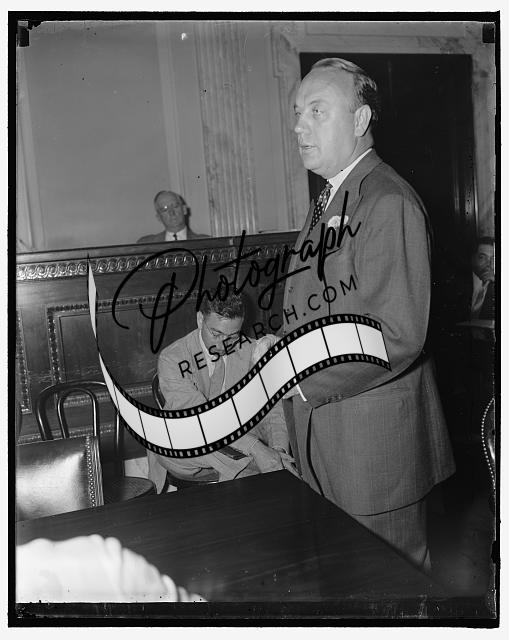 Title: Begins training for hog-calling contest. Washington, D.C. June 9. Interest is at fever height in Louisiana for the coming hog-calling contest at the Capitol between Rep. Robert L. Mouton; of Louisiana, and Rep. Otha D. Wearin, of Iowa. So much so that Governor Richard Leche of the bayou state made a special trip, bearing a live porker; to assist Rep. Mouton in his pre-contest training. The contest is the result of a controversy between the two solons of the merits of the hog callers of their respective states. In the photograph, left to right: Theodora Olivier, neice and secretary to Rep. Mouton; Governor Leche, and Rep. Mouton. 6/9/37