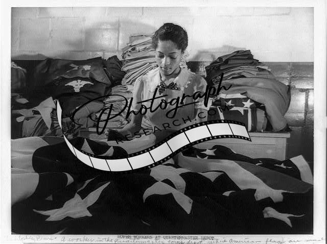 Making flags,military use,quartermaster corps depot,African Americans,PA,1942