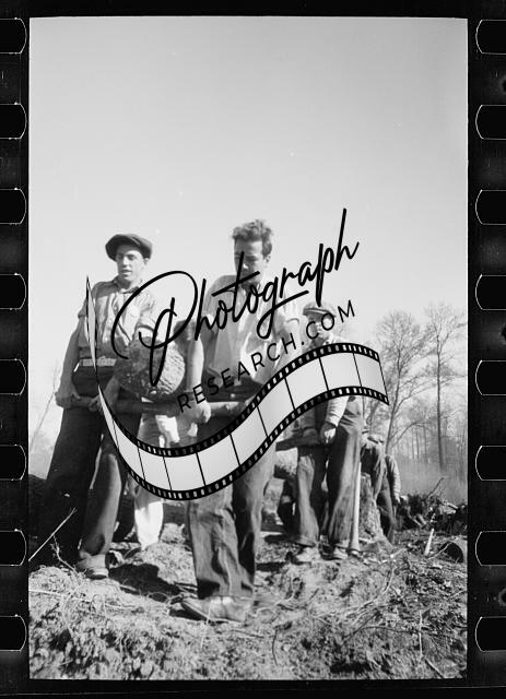 Transient workers,clearing land,carrying logs,Greenbelt,Maryland,MD,1935 1