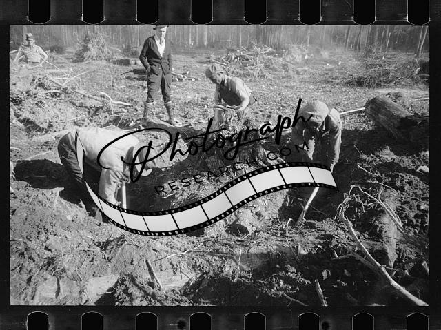 Land clearing,sawing,transient workers,laborers,nitrates,Greenbelt,Maryland,1935