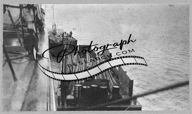 Transport of Rails,Cordova,Alaska,AK,Laborers,Railroad Ties,RR,Deck of Ship,3