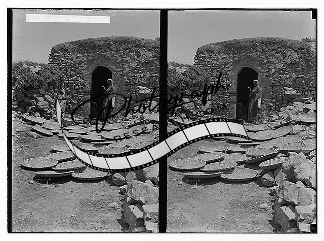 Straw baskets drying.,Middle East,American Colony Jerusalem Photo Dept,1900-1920