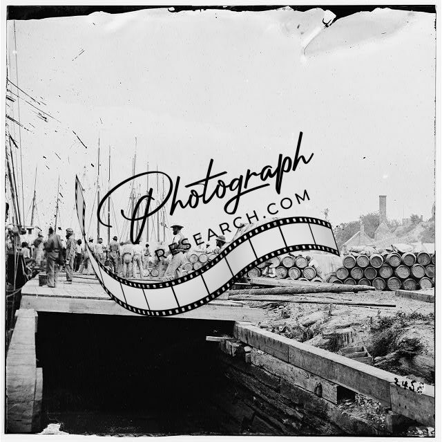 Unloading supplies,transports,water vessels,docks,City Point,Virginia,VA,1861