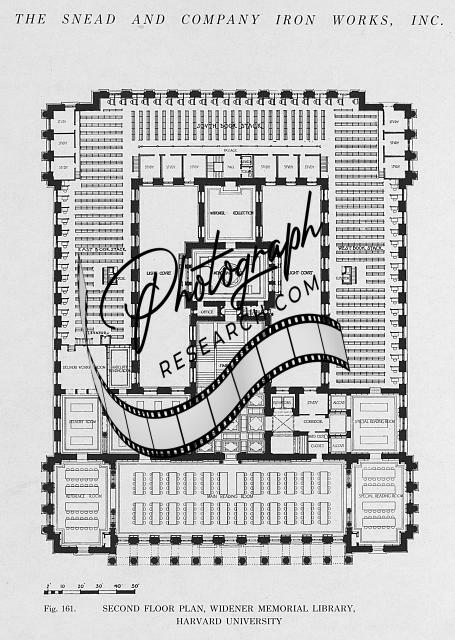Second floor plan,Widener Memorial Library,Harvard,1915