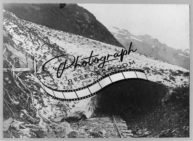 Snow slide near mile 53 of A.N. Railway,Alaska,AK,Railroad Tracks,RR,Tunnel,1915