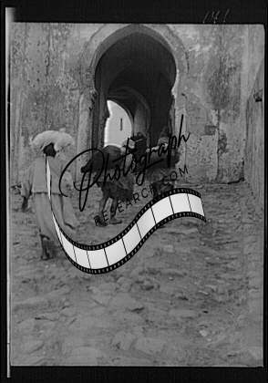Travel views,arches,men,clothing,engravings,nitrates,Morocco,Arnold Genthe,1904