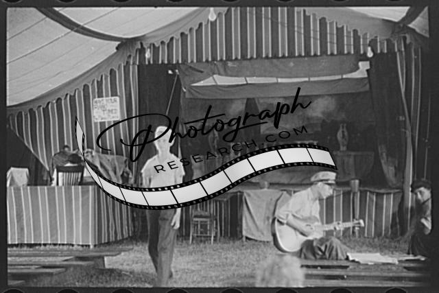 Title: Traveling carnival at Old Trap, North Carolina. This troupe follows the migrants around and stops where there is a large settlement of them. A show generally consists of a band concert and movie and vaudeville