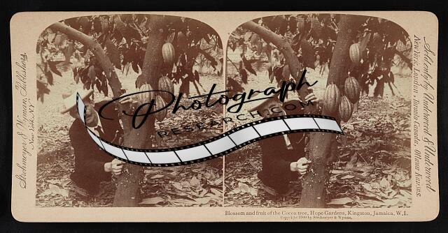 Blossom,fruit of the cocoa tree,Hope Gardens,Kingston,Jamaica,W.I.