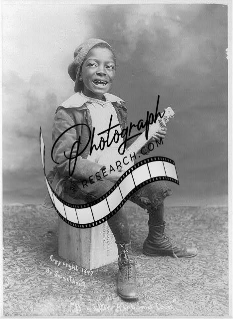 Little Alabama Negro,African American boy sitting/singing with his banjo,c1897