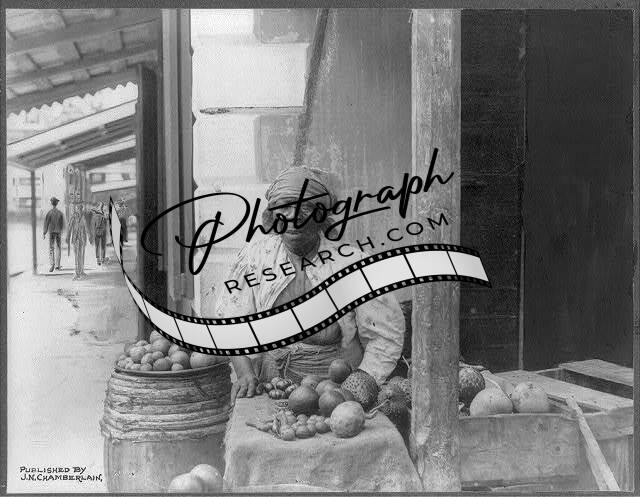 Old African American woman sitting on a street corner selling fruit,vegetables
