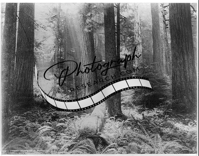 Man seated on log,Timbered Wilderness,Moss,Ferns,c1911