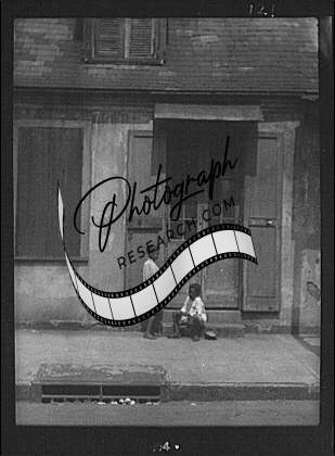 Two children outside door,shutters,French Quarter,New Orleans,LA,A Genthe,1920