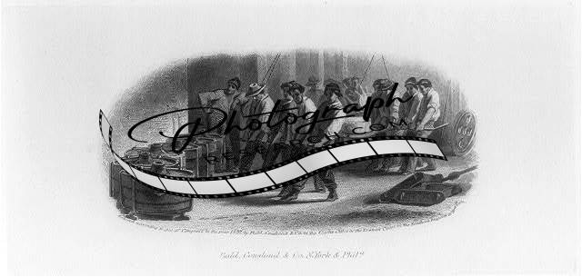 Proof,bank note vignette,men carrying molten metal,casts,Bald,Cousland,Co,c1857