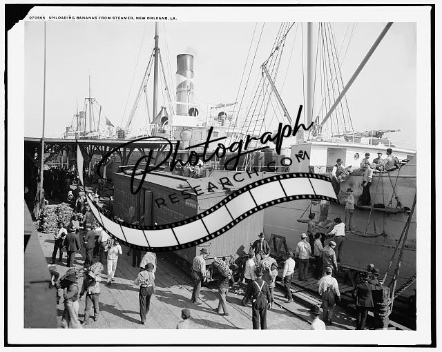Unloading bananas,steamer,boats,ships,fruit,industry,New Orleans,Louisiana,1900