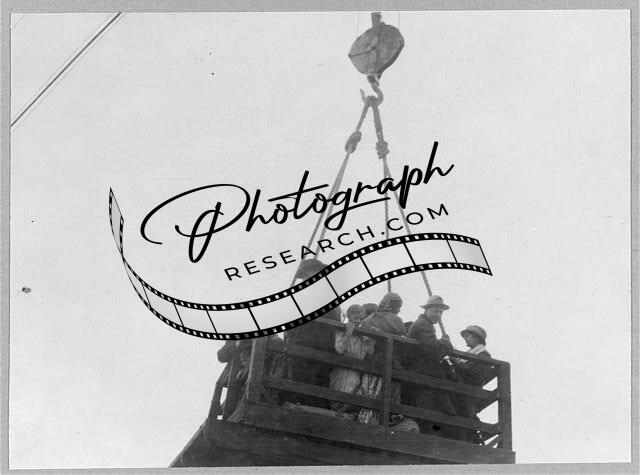 Going from ship to dock,Nome,Alaska,AK,People being hoisted in Box,Pulley,c1908