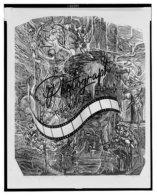 The temptation of Eve, Print showing abstract depictions of Eve in the Garden of Eden.