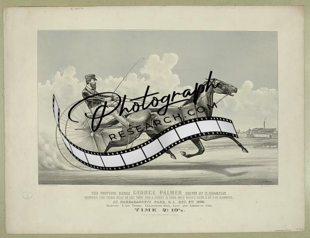 The trotting horse George Palmer driven by C. Champlin,Harness Racing,c1870
