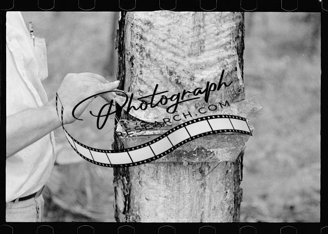 Trap on pine tree,catching sap,turpentine distillation,Irwin County,Georgia