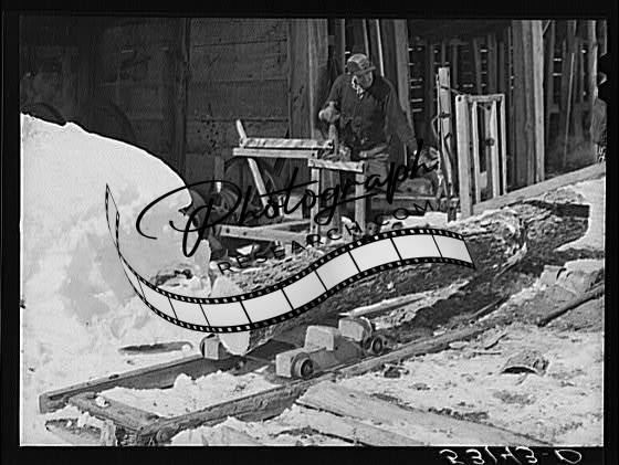 Unloading stove wood from sled woodshed. Woodstock,Vermont