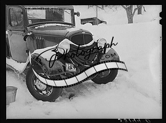 Title: Truck snowed under on farm in Woodstock, Vermont