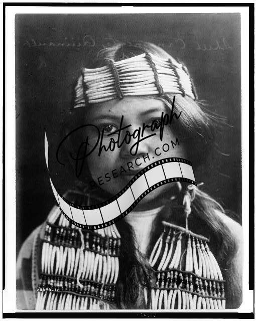 Shell ornaments-Quinault,young Indian girl wearing shell ornaments,Edward Curtis