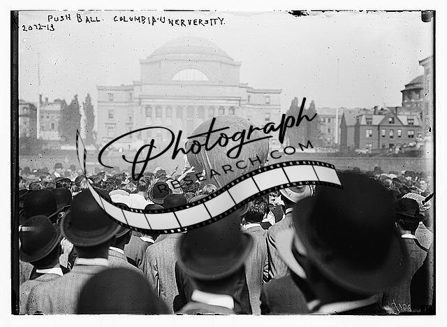 Push-ball,Columbia University,group of males holding large ball,spectators 1