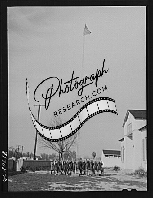 Title: Tulare County, California. FSA (Farm Security Administration) farm workers' camp. Putting up flags for the President's birthday ball